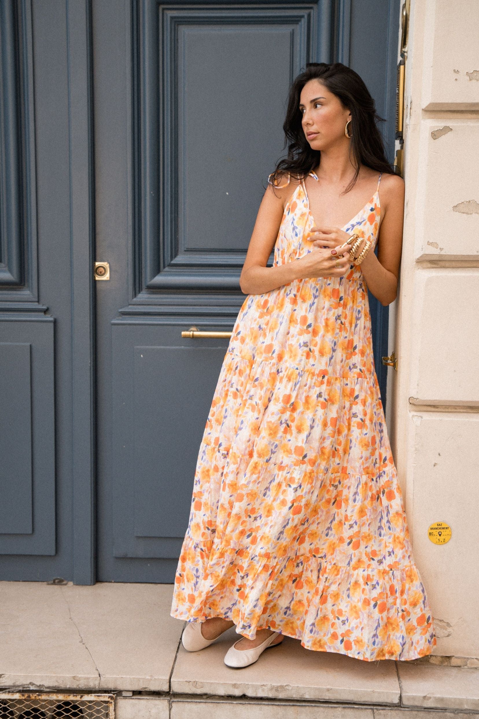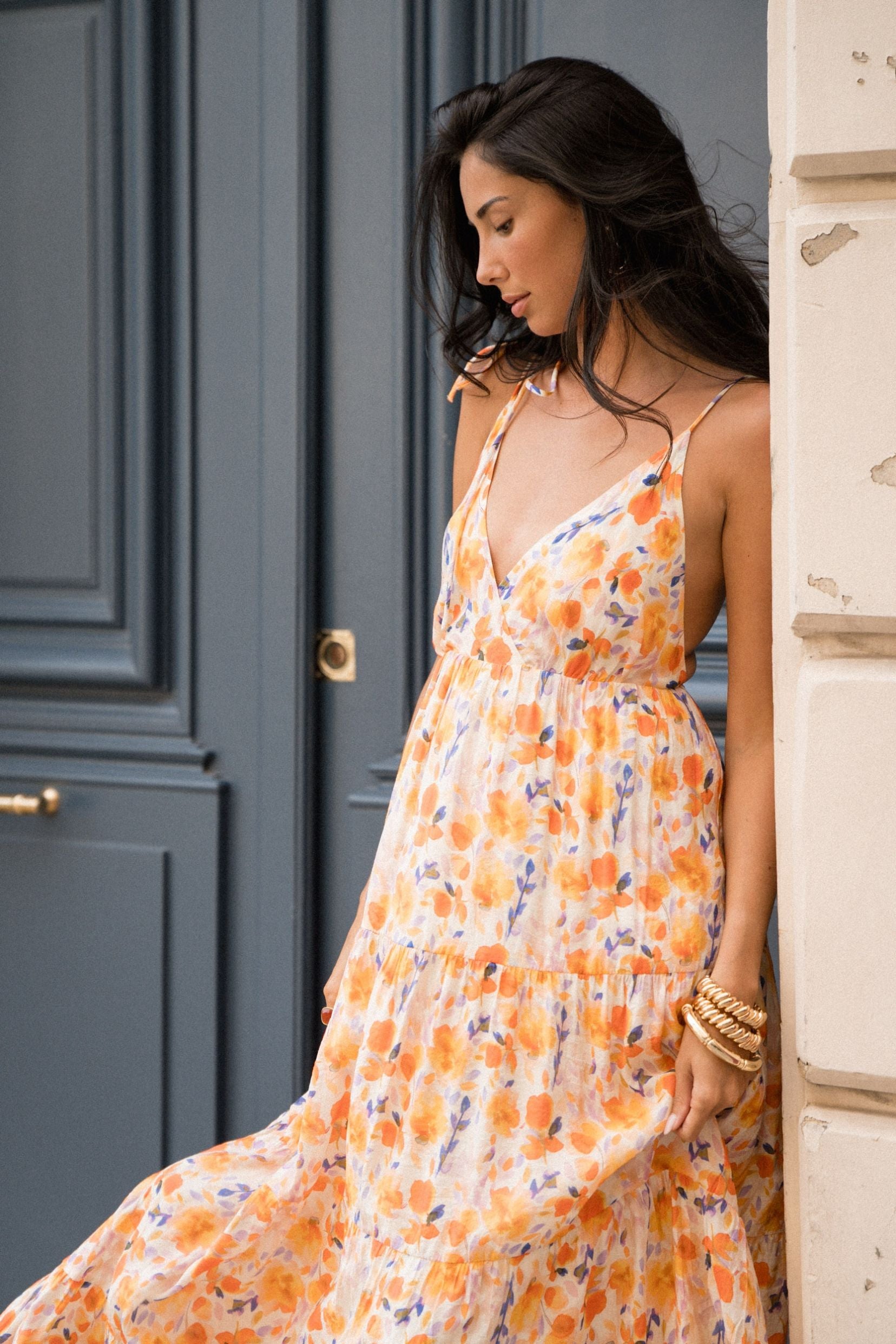 La robe Ludivine incarne la douceur et la féminité. Longue et fluide, elle offre une silhouette élancée et un tombé naturel qui flatte toutes les morphologies. Son col cache-cœur souligne délicatement le décolleté, apportant une touche raffinée à l’ensemble. Les bretelles ajustables permettent un ajustement parfait et un confort optimal. Son motif floral, à la fois poétique et intemporel, fait de Ludivine la robe idéale pour vos journées d’été, vos escapades au soleil ou vos occasions spéciales.
