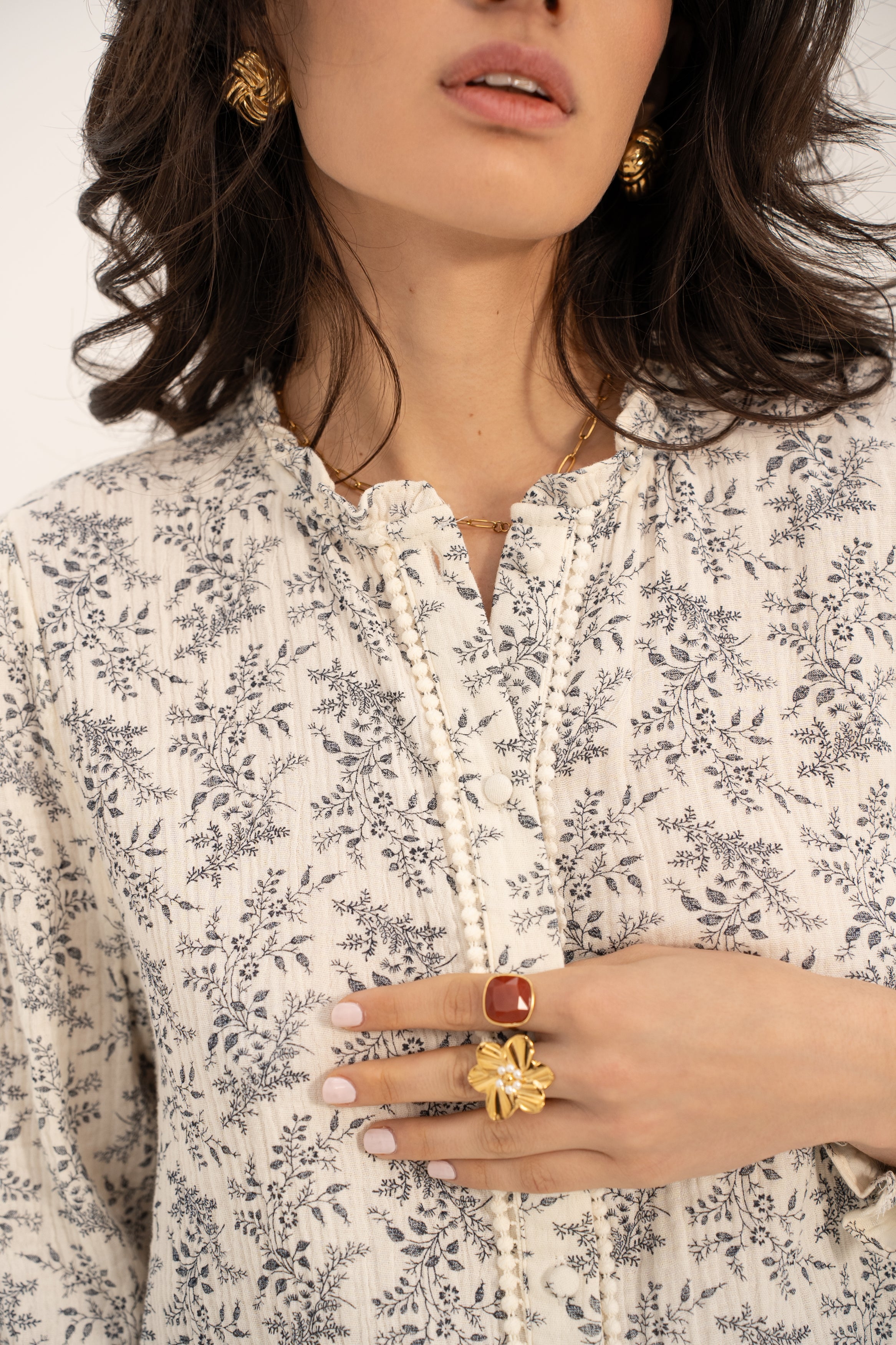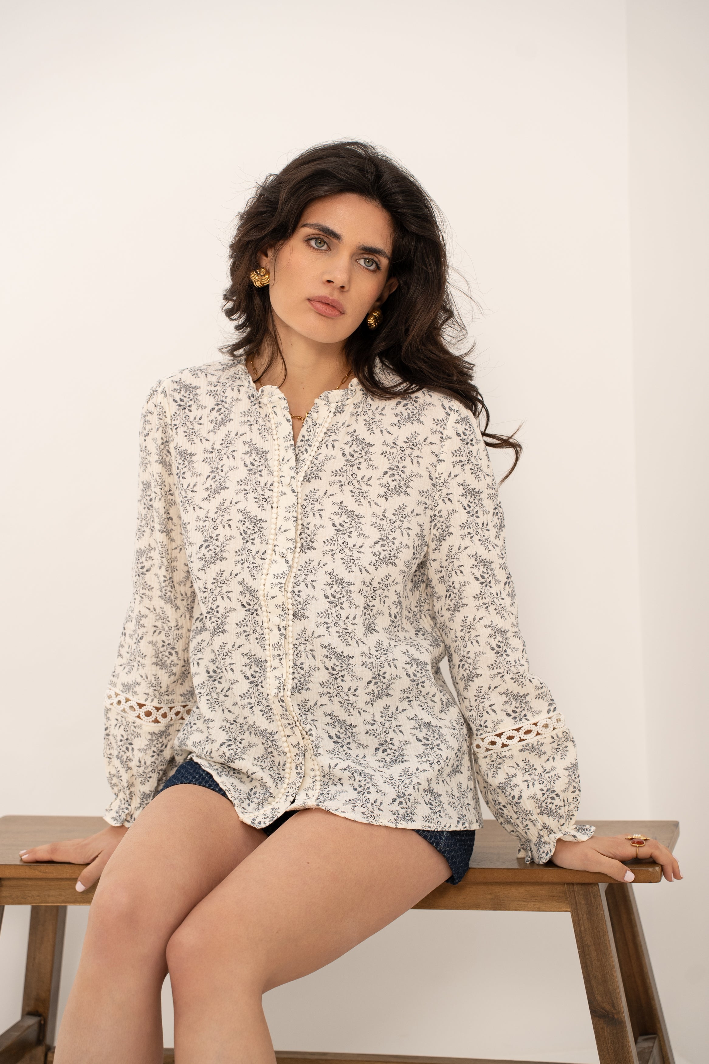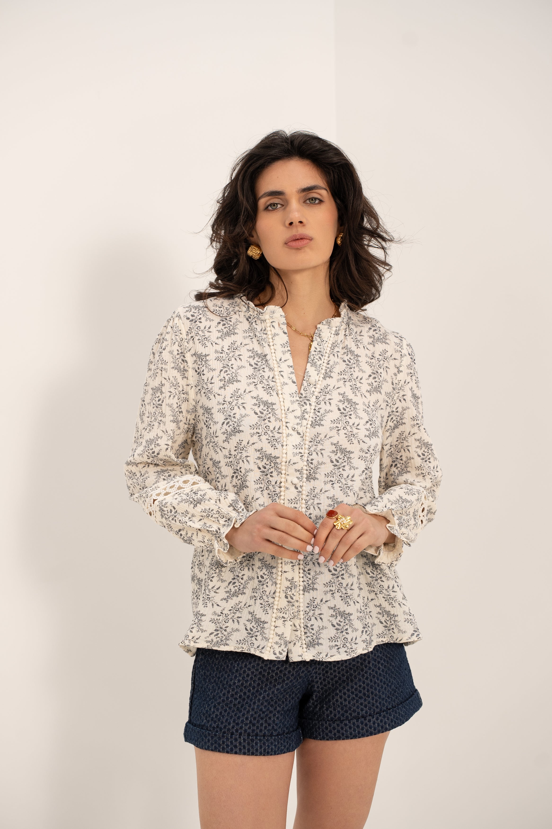 La chemise Agathe, à manches longues, allie élégance et délicatesse avec son col haut et son imprimé fleuri raffiné. Les petits détails brodés ajoutent une touche subtile de sophistication, créant un équilibre parfait entre modernité et féminité. Sa coupe fluide et légère en fait une pièce versatile, idéale pour toutes les occasions.