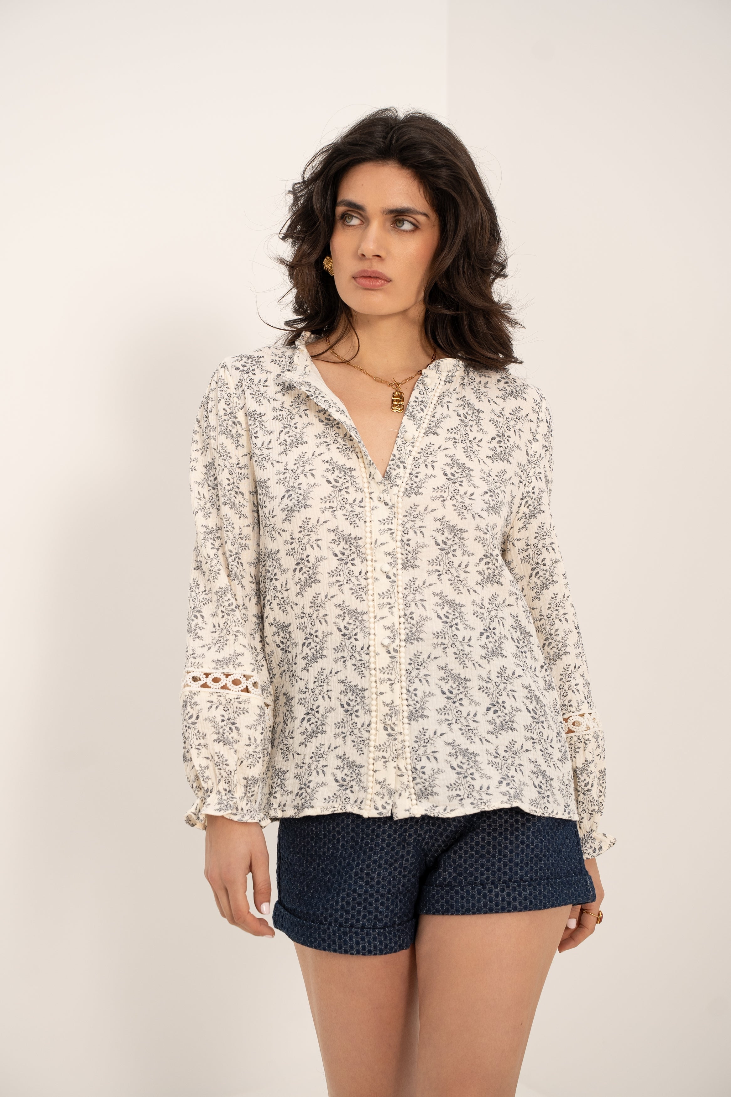 Que ce soit avec un pantalon chic ou une jupe légère, la chemise Agathe apporte une touche de fraîcheur et de charme à vos tenues, pour un look à la fois élégant et intemporel.