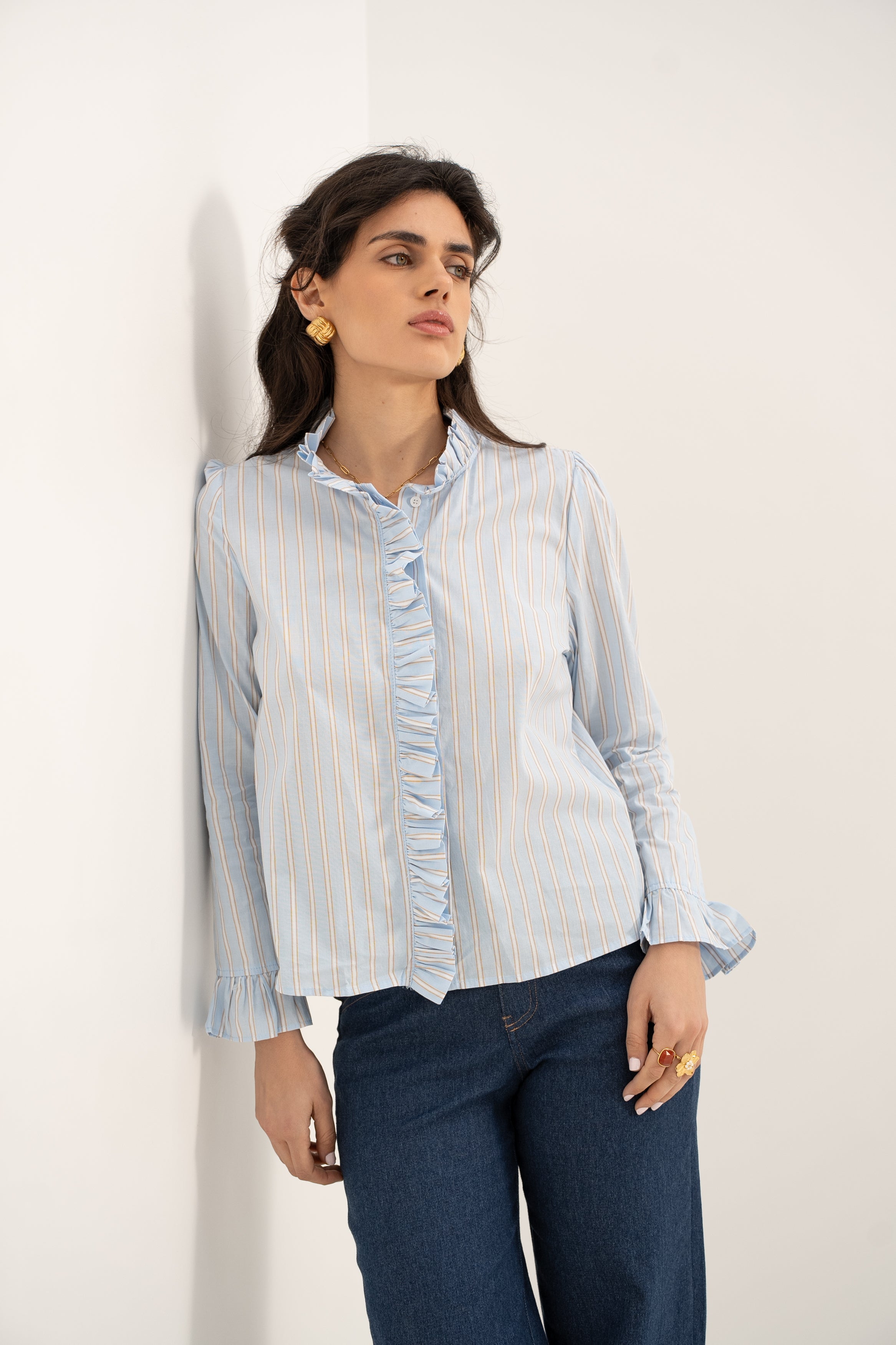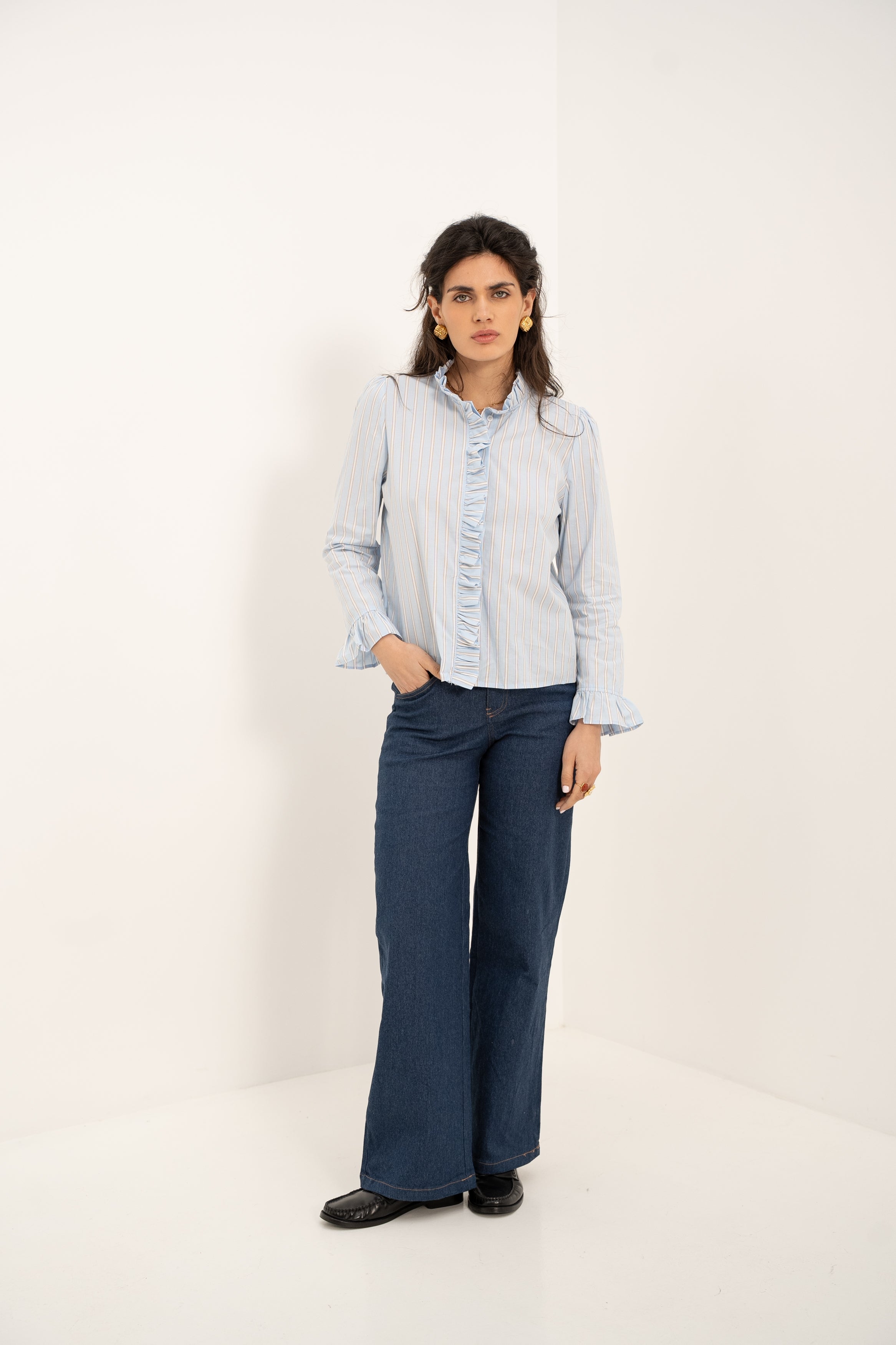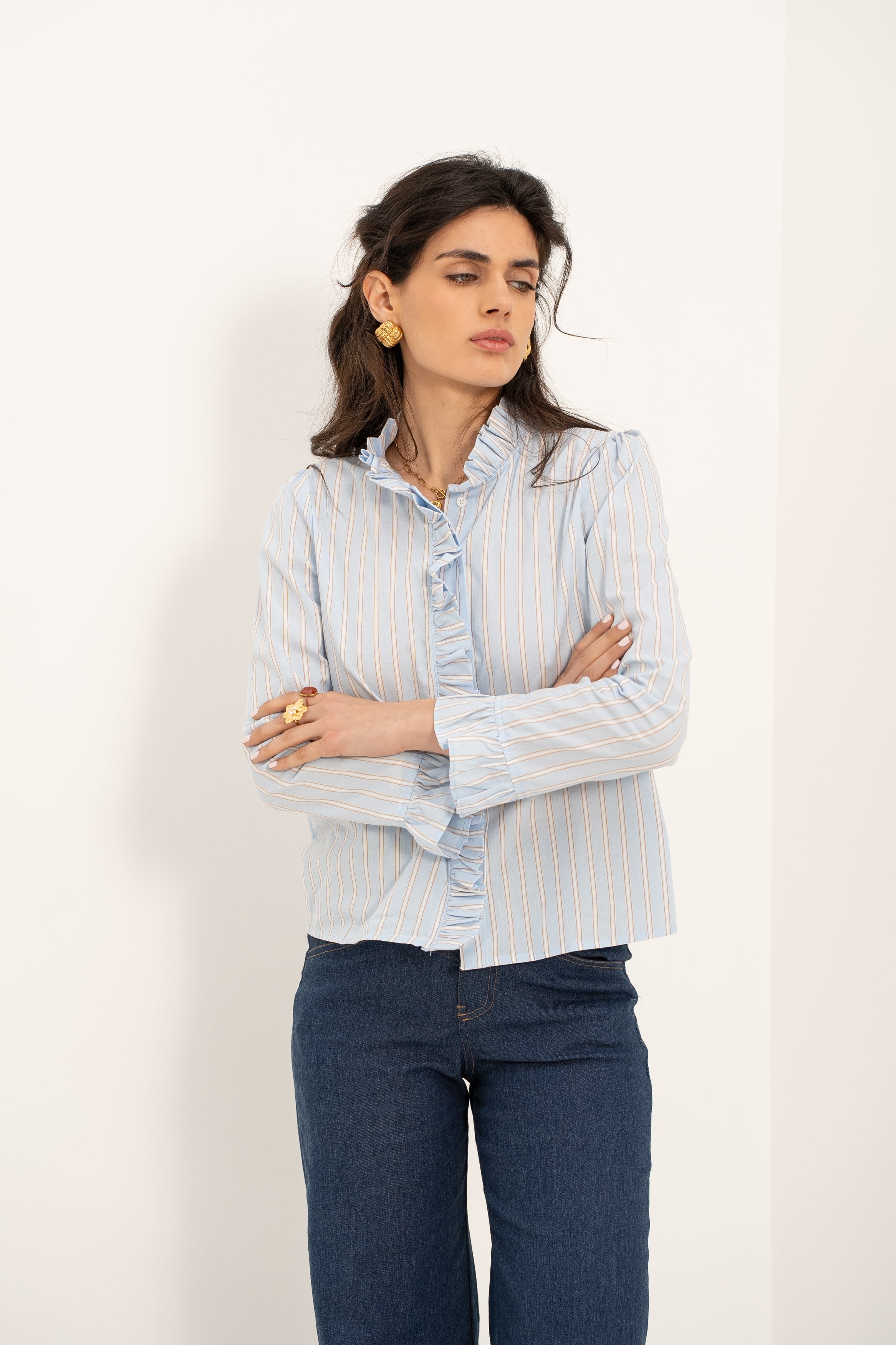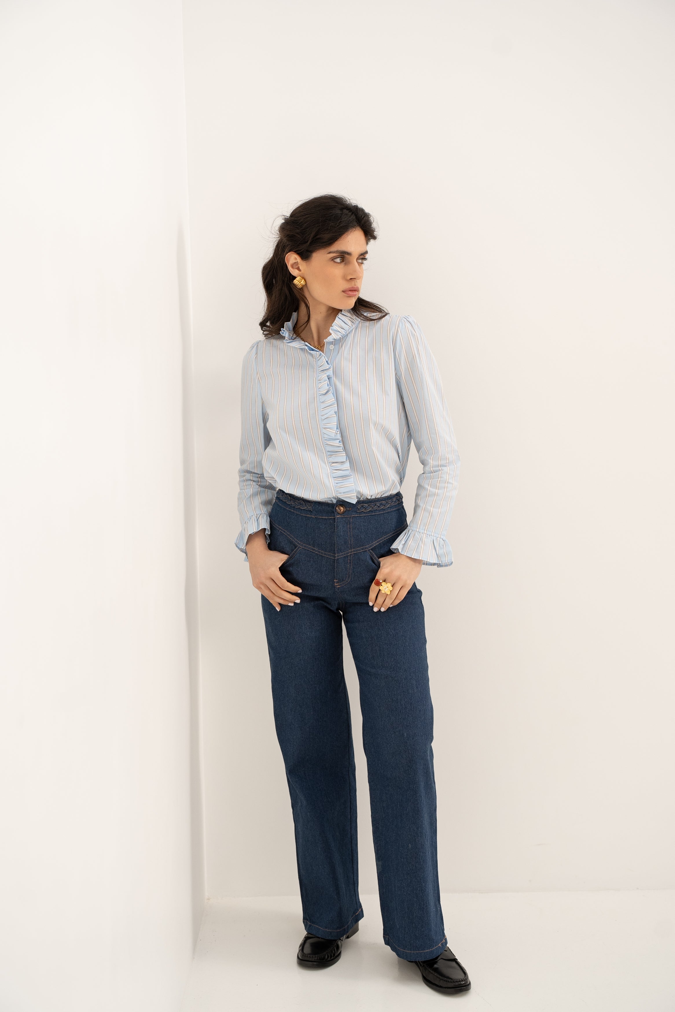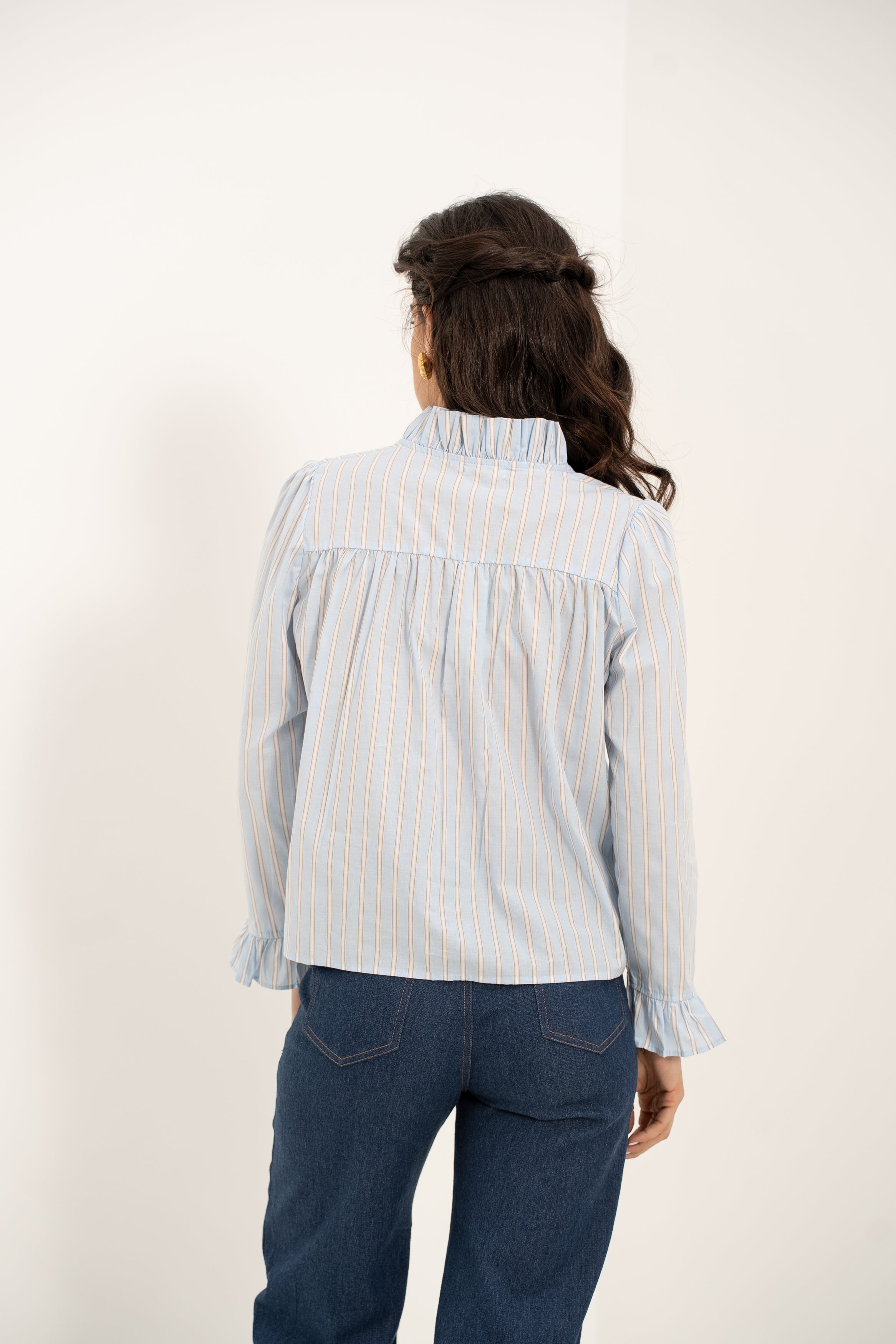 Que ce soit avec un jean décontracté ou une jupe plus habillée, la blouse Annie apporte une touche de sophistication subtile à vos tenues, pour un look chic et intemporel