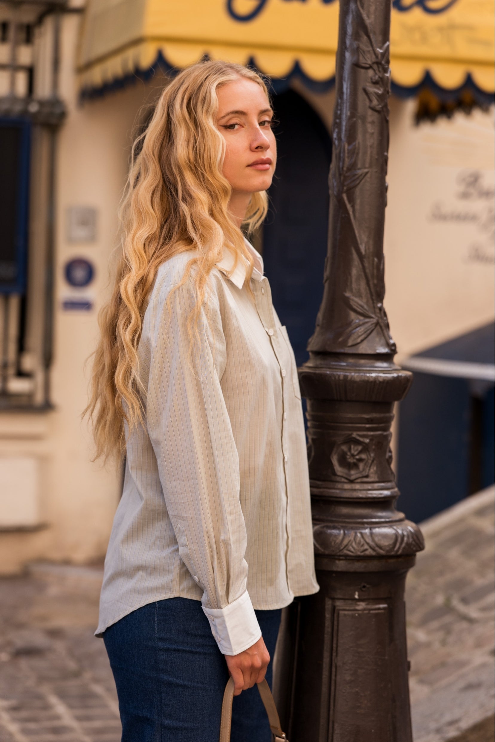 Avec sa coupe droite, la chemise Ophélie met en valeur un col chemise contrasté et des poignets assortis. La poche plaquée sur la poitrine et le boutonnage sur le devant complètent ses détails soignés.