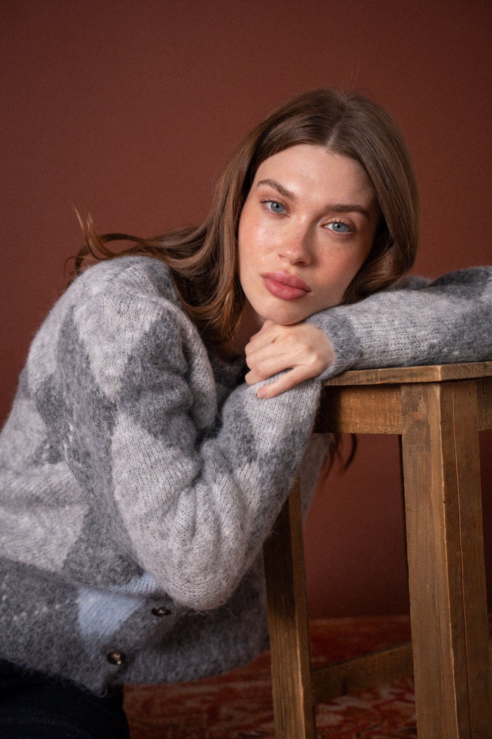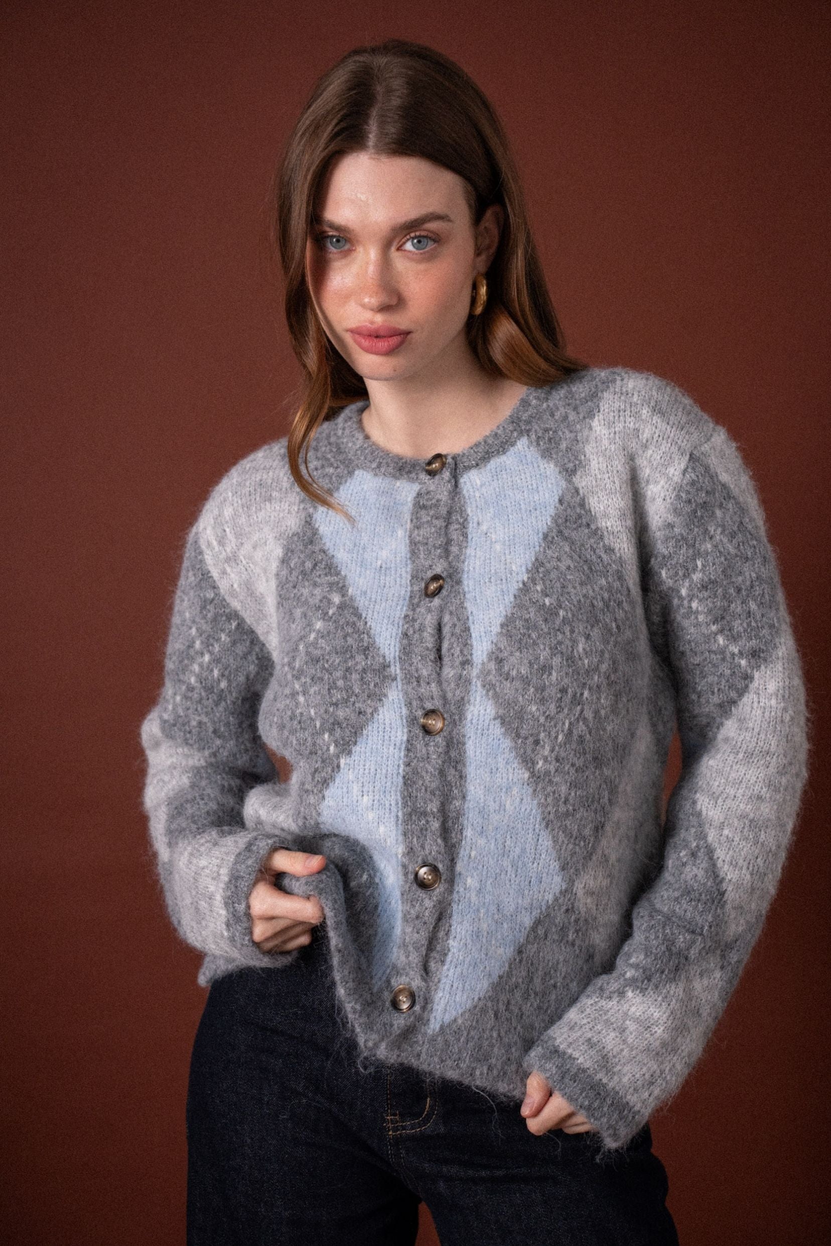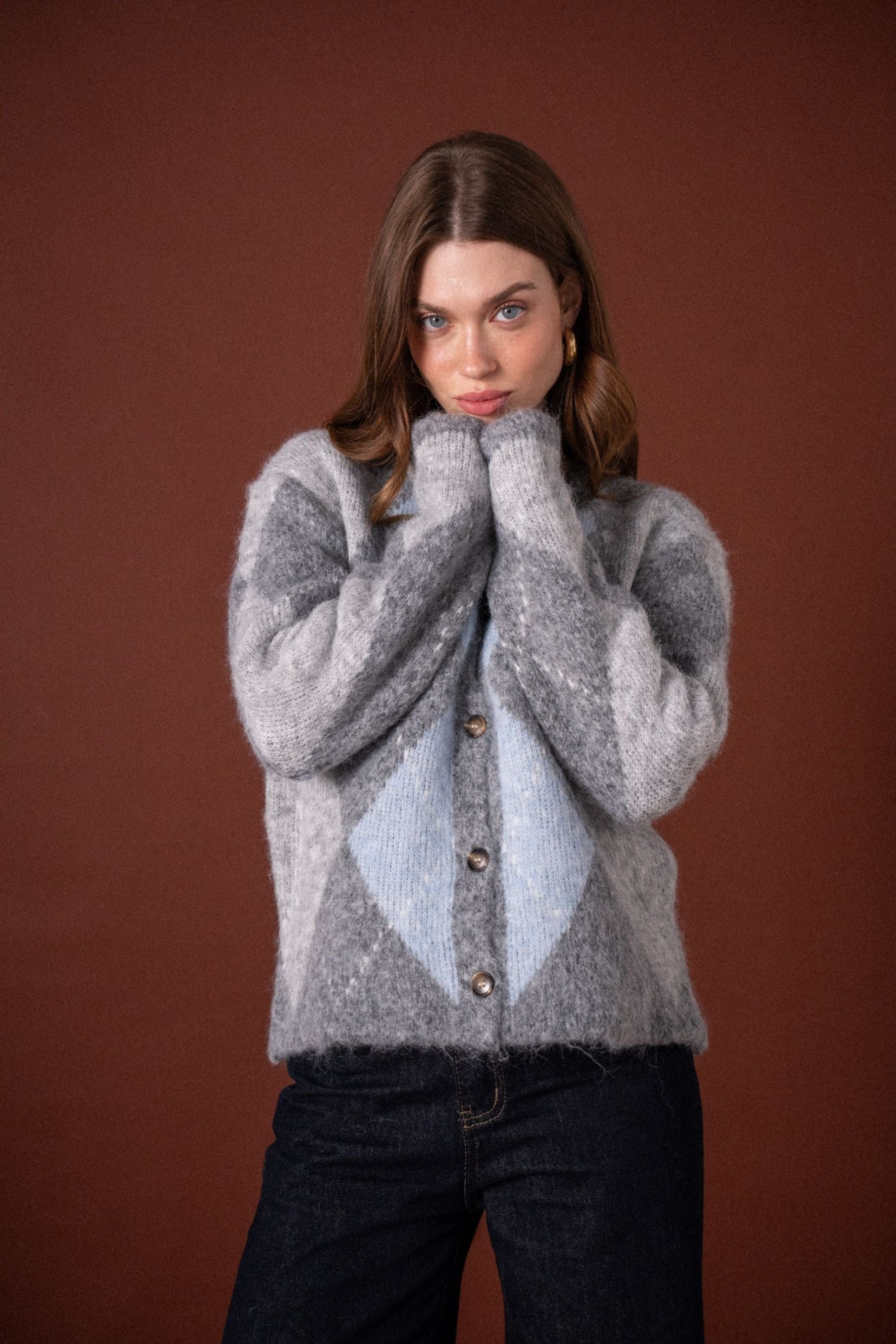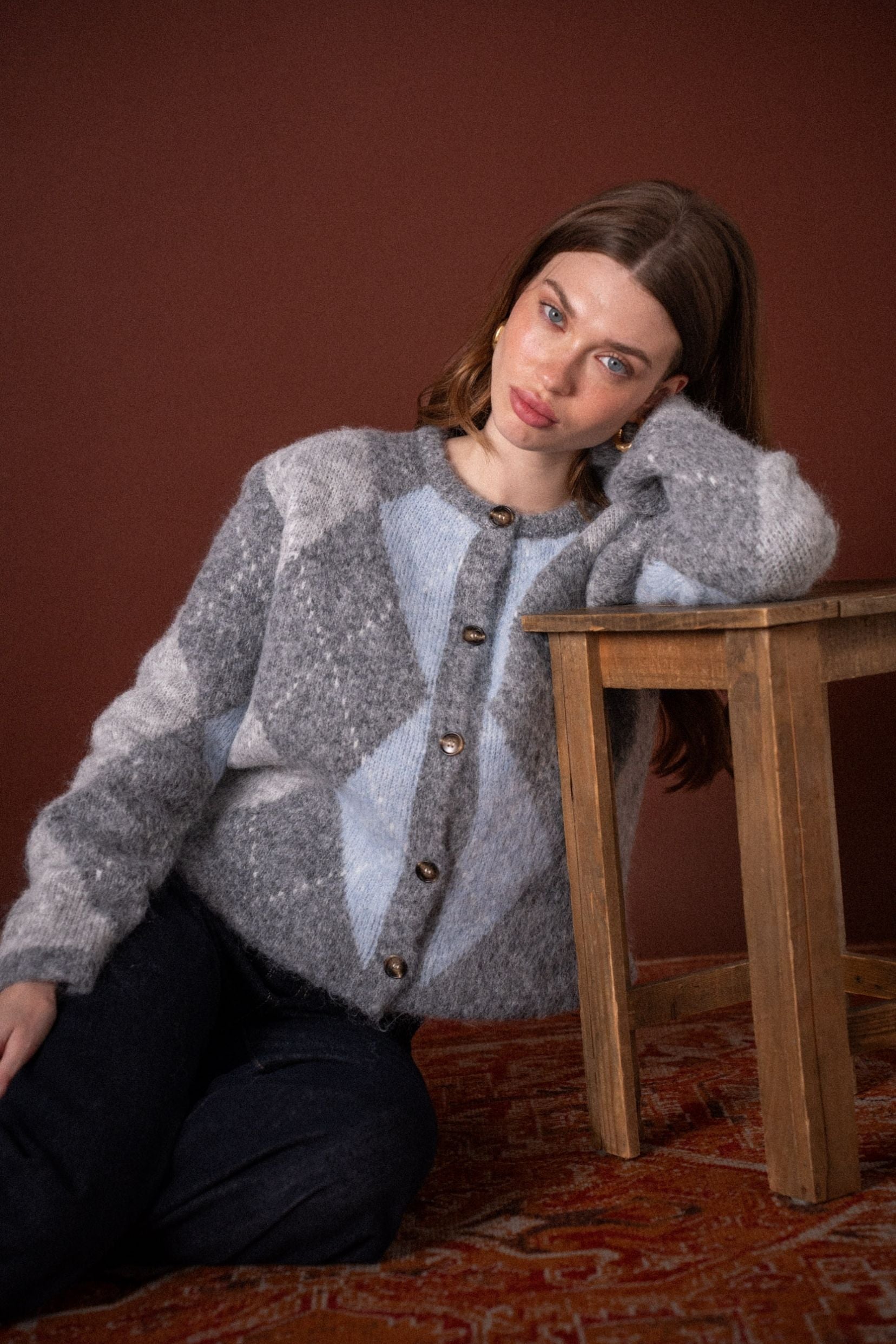 Ce cardigan à motif à carreaux associe élégance et confort. Sa coupe droite assure une silhouette nette, tandis que ses boutons délicats et son col classique apportent une touche de sophistication intemporelle.