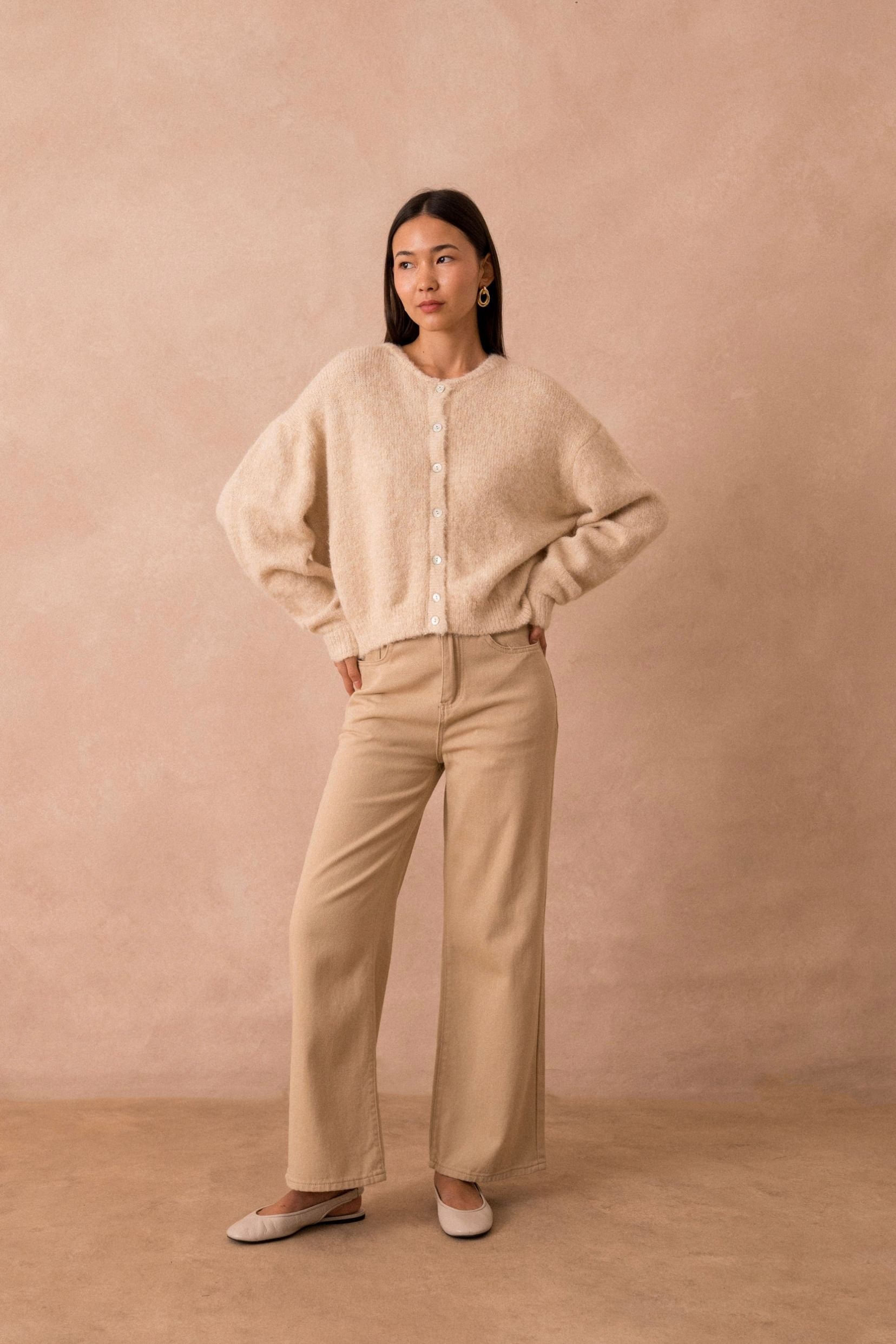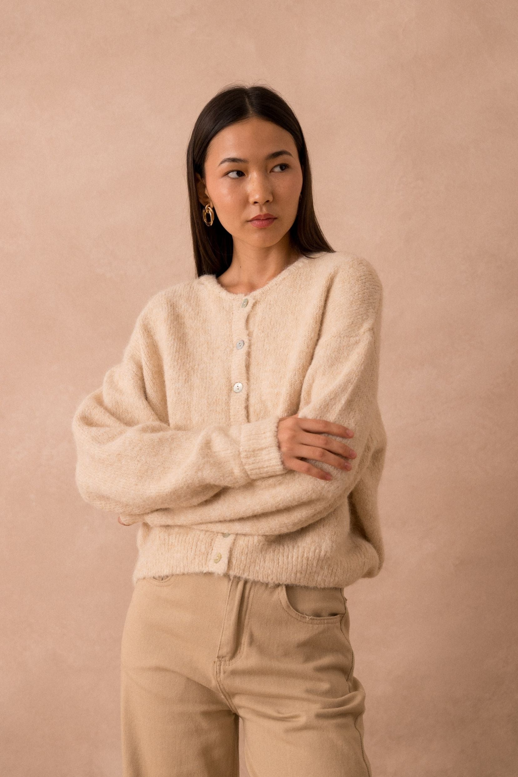 Sa coupe loose lui donne un côté décontracté-chic, parfait pour les journées où l'on veut allier style et aisance. Les boutons en nacre apportent une touche d'éclat subtil, parce que, après tout, un petit détail peut tout changer.