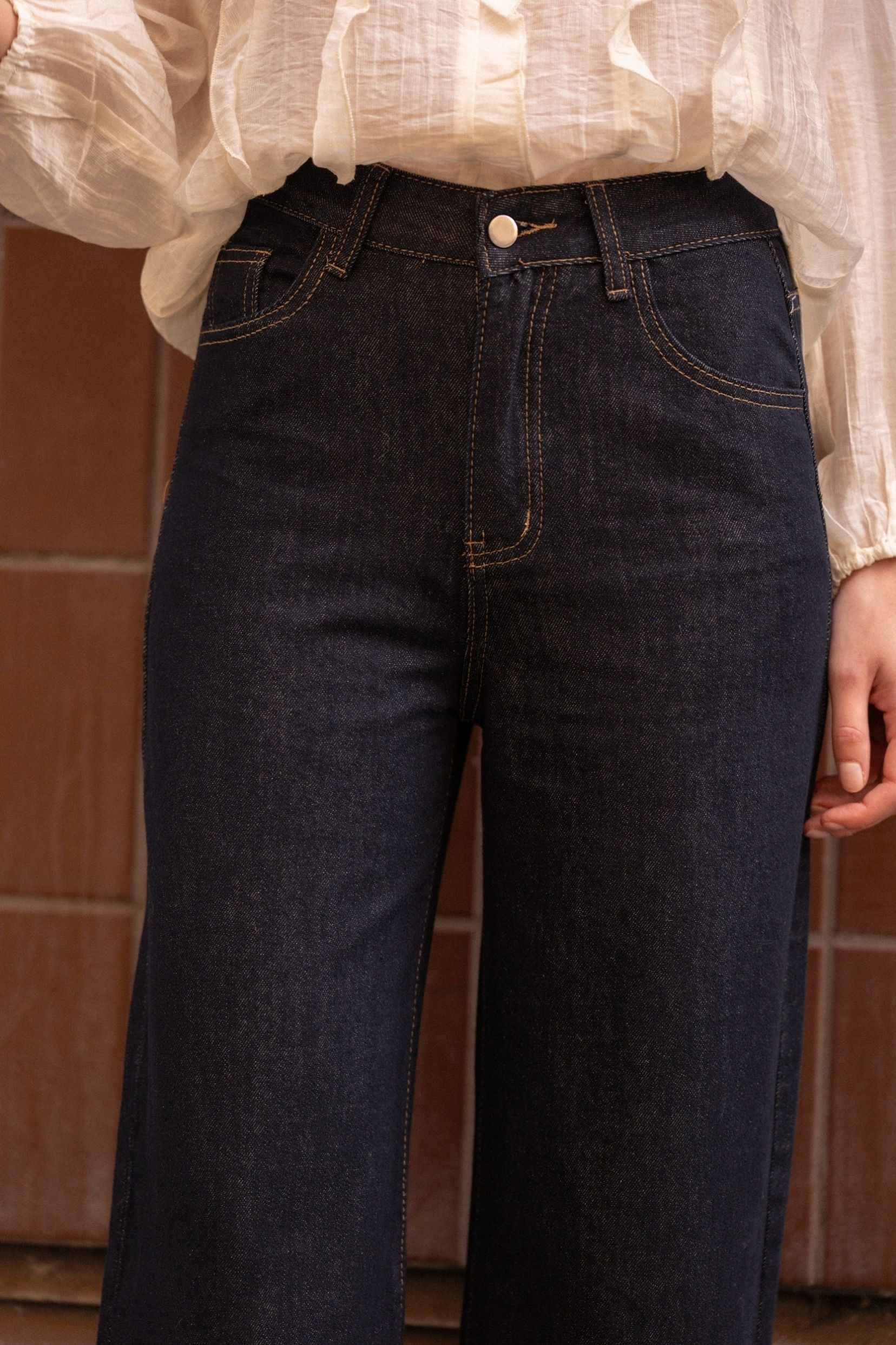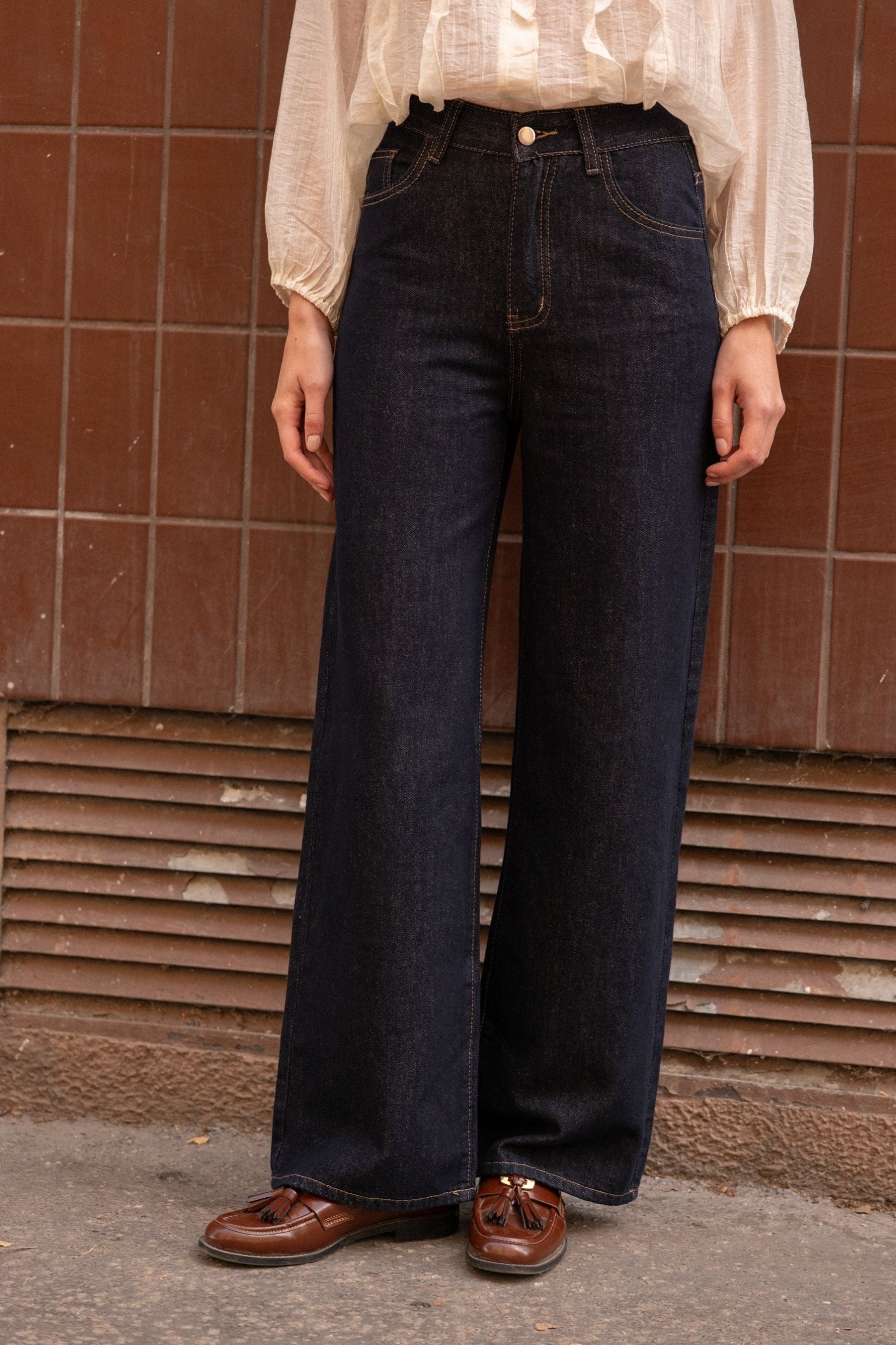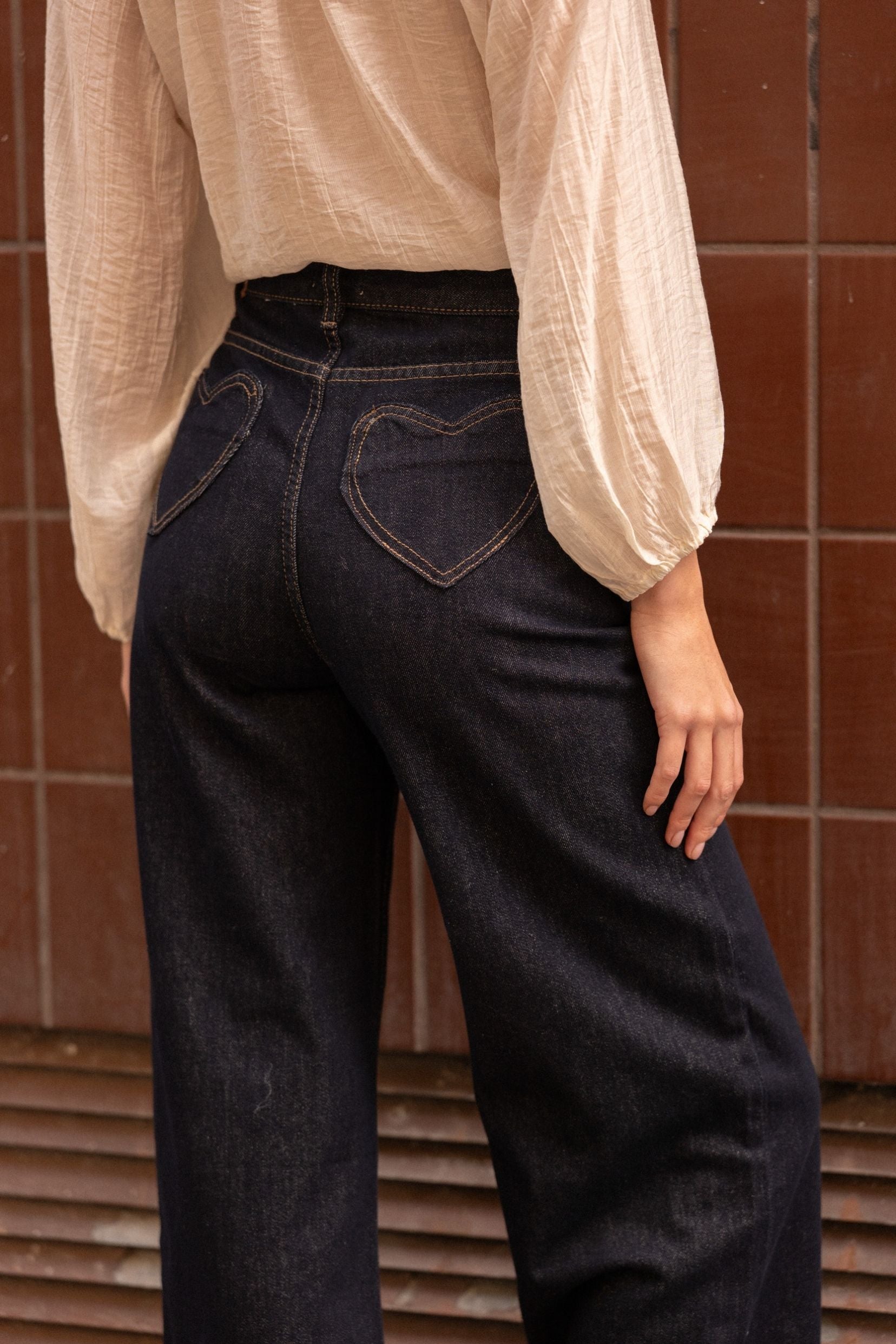 Ce jean à la coupe droite et taille haute se distingue par ses poches arrière brodées en forme de cœur. Une pièce intemporelle du vestiaire, twistée par un détail espiègle et féminin.