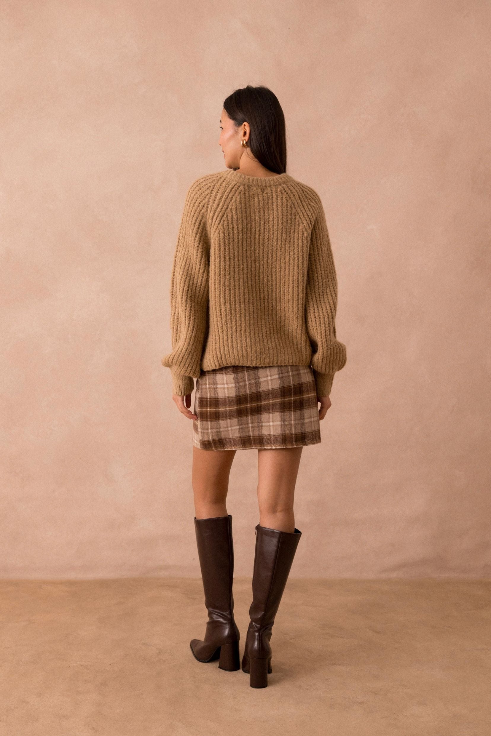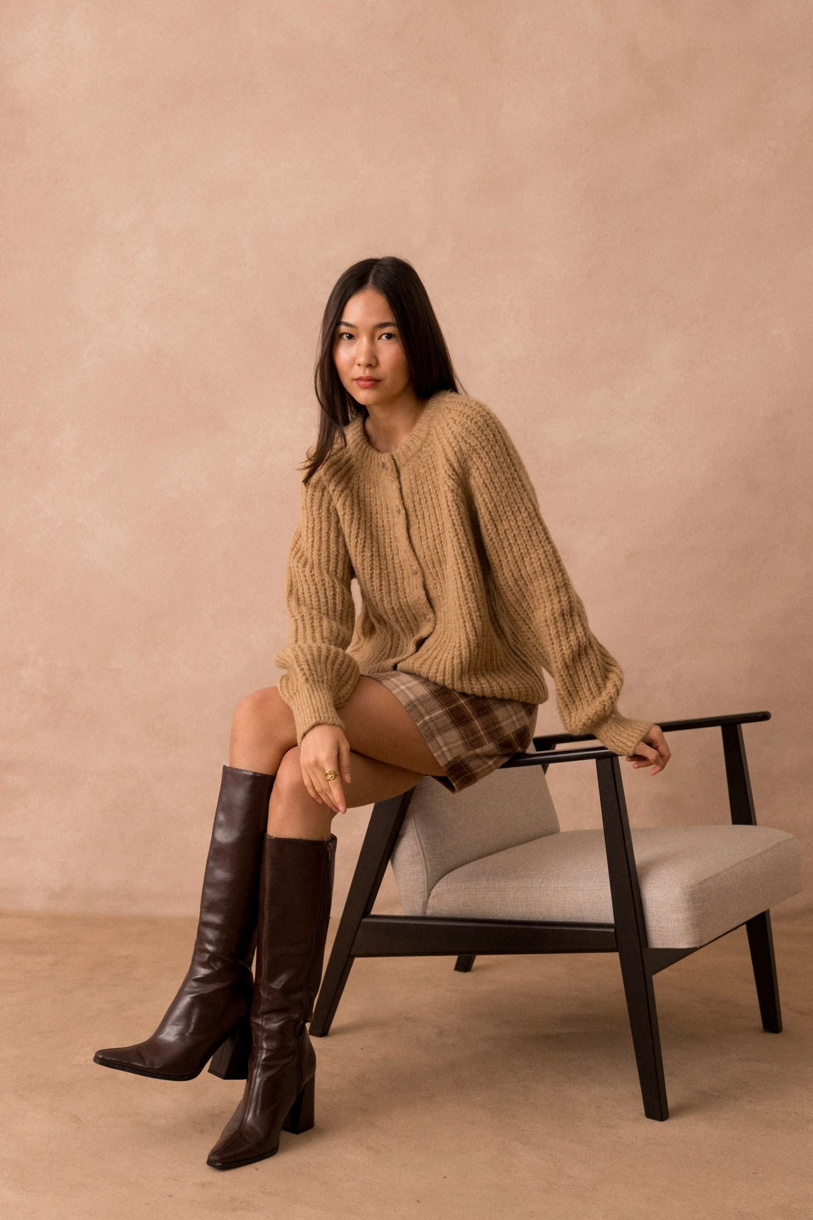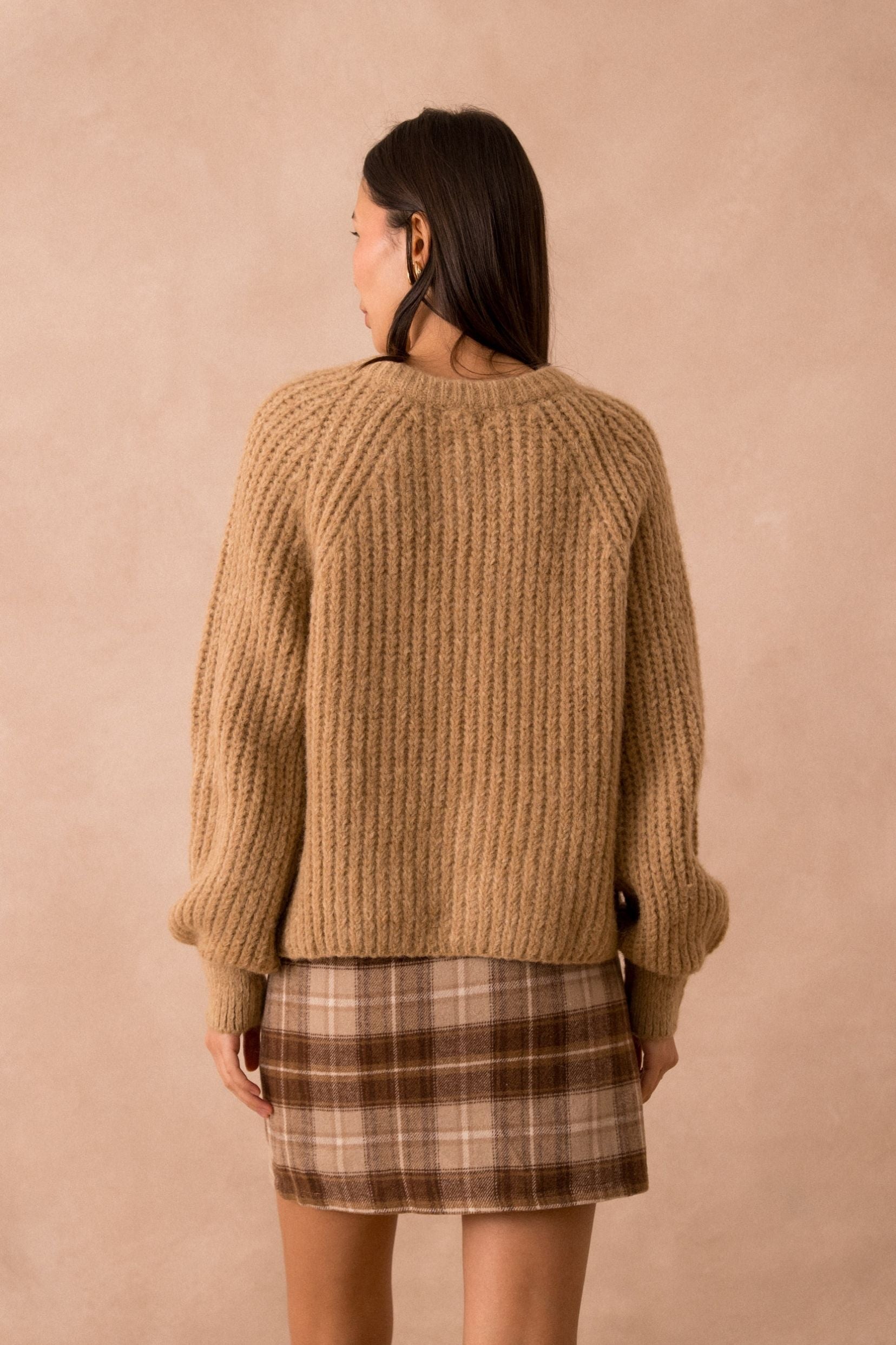 Ce cardigan à col rond se distingue par sa maille épaisse et ses manches légèrement ballon. Fermé par une rangée de boutons ton sur ton, il conjugue confort et allure dans une version sobre et intemporelle.