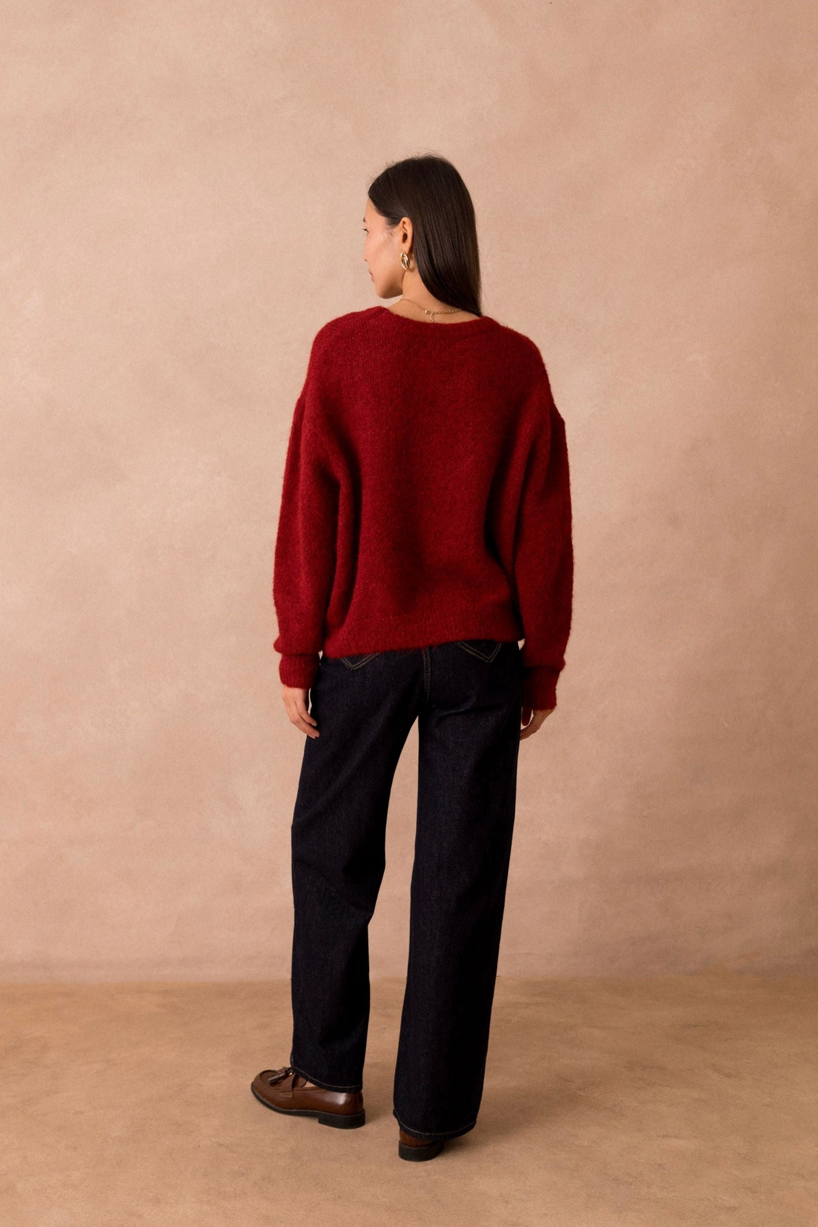 Le pull Jacky est l’essentiel pour une garde-robe confortable et tendance. Confectionné en grosses mailles, il offre une texture chaleureuse et douillette qui vous enveloppe avec style. Ses manches longues et son col rond classique en font un choix polyvalent, parfait pour les superpositions. Les gros boutons sur le devant ajoutent une touche distinctive et moderne à ce modèle intemporel.