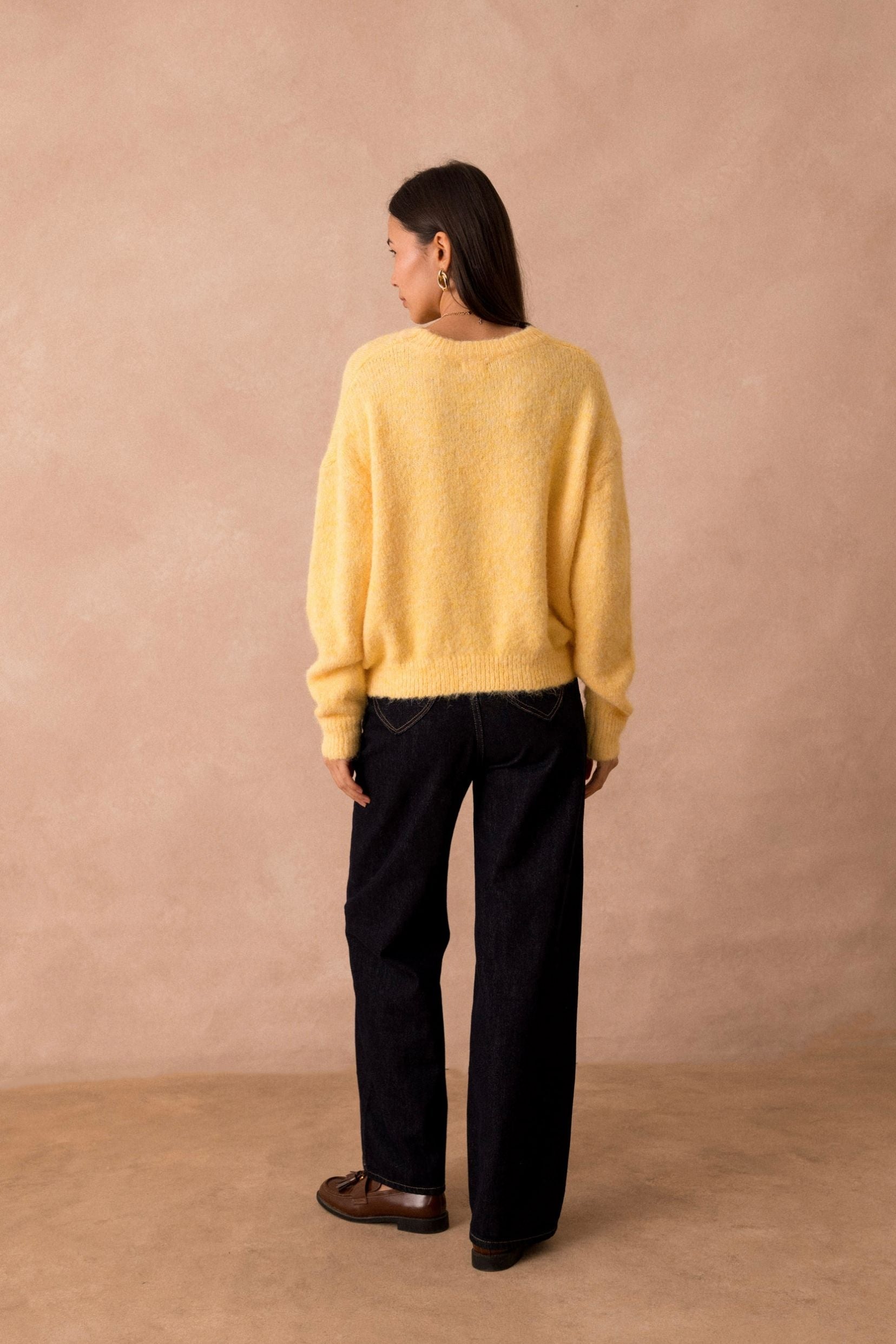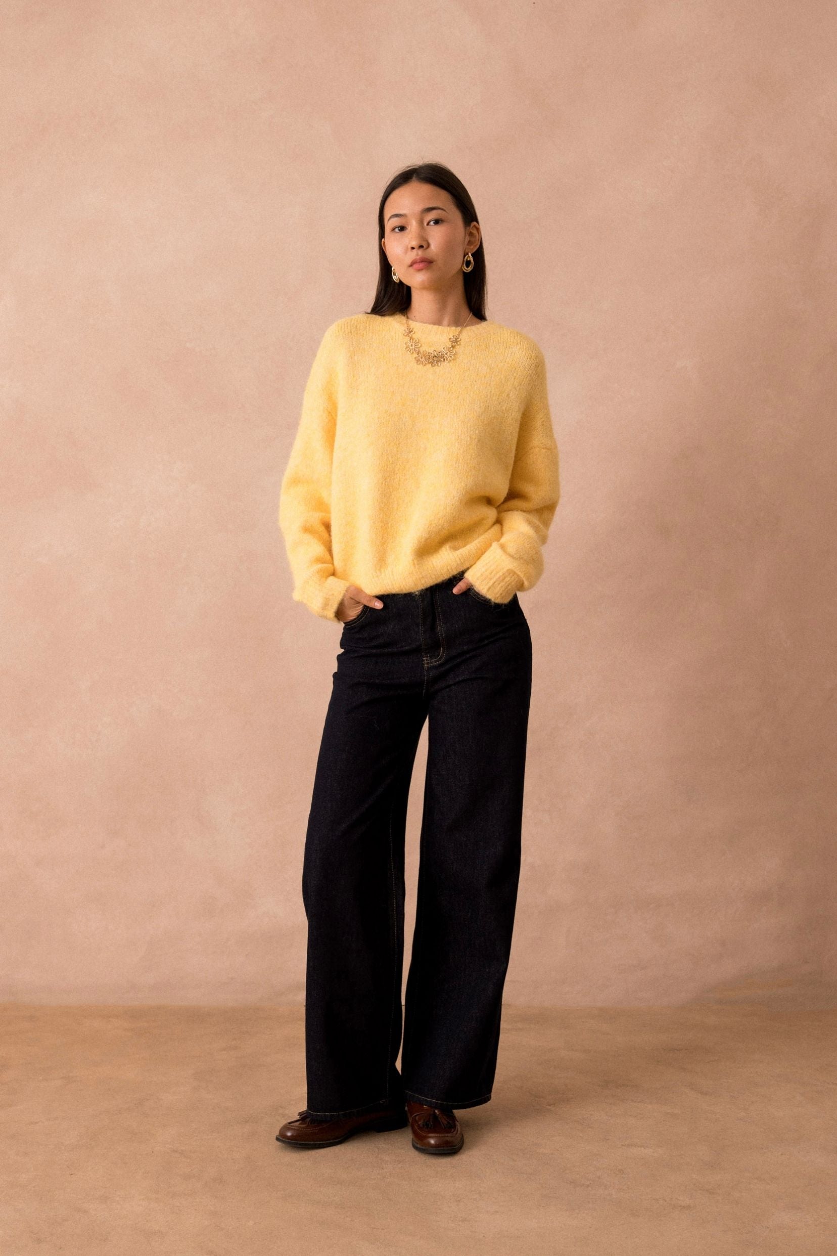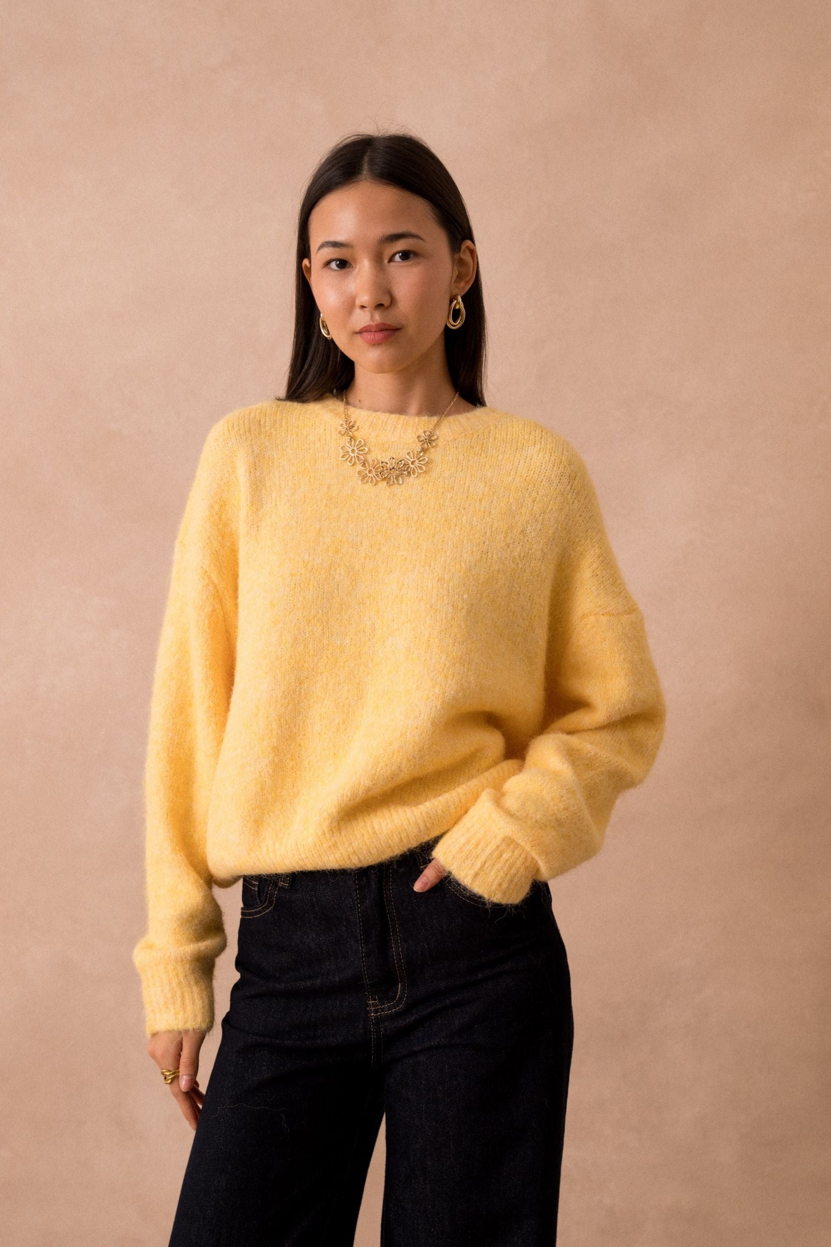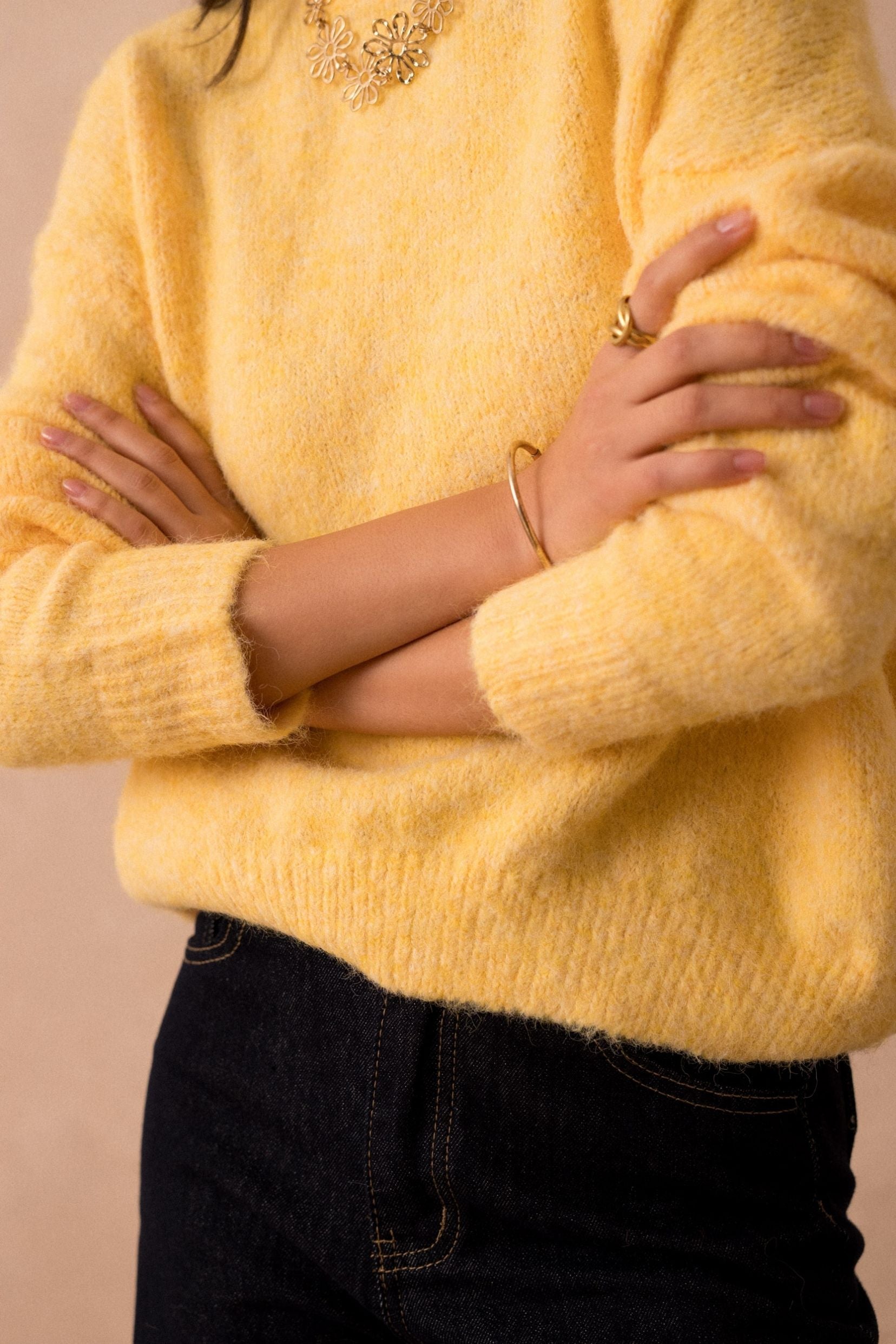 Le pull Jacky est l’essentiel pour une garde-robe confortable et tendance. Confectionné en grosses mailles, il offre une texture chaleureuse et douillette qui vous enveloppe avec style. Ses manches longues et son col rond classique en font un choix polyvalent, parfait pour les superpositions. Les gros boutons sur le devant ajoutent une touche distinctive et moderne à ce modèle intemporel.