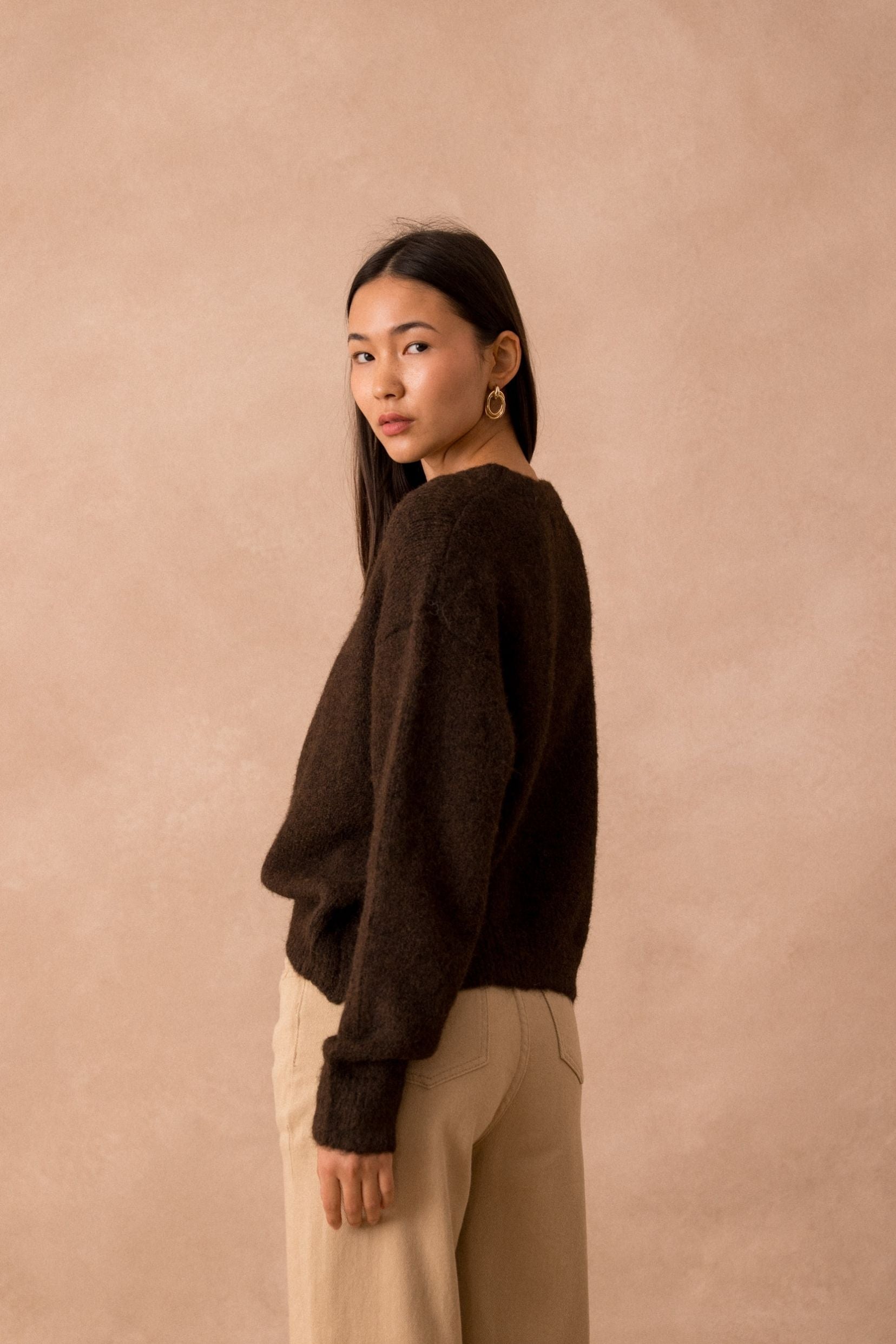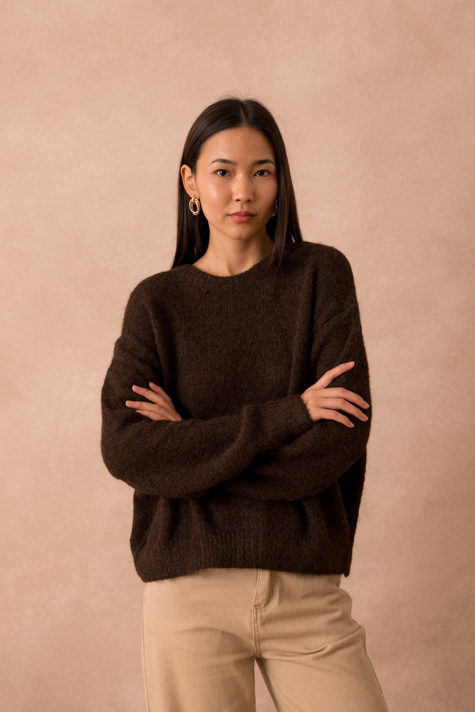 Le pull Jacky est l’essentiel pour une garde-robe confortable et tendance. Confectionné en grosses mailles, il offre une texture chaleureuse et douillette qui vous enveloppe avec style. Ses manches longues et son col rond classique en font un choix polyvalent, parfait pour les superpositions. Les gros boutons sur le devant ajoutent une touche distinctive et moderne à ce modèle intemporel.