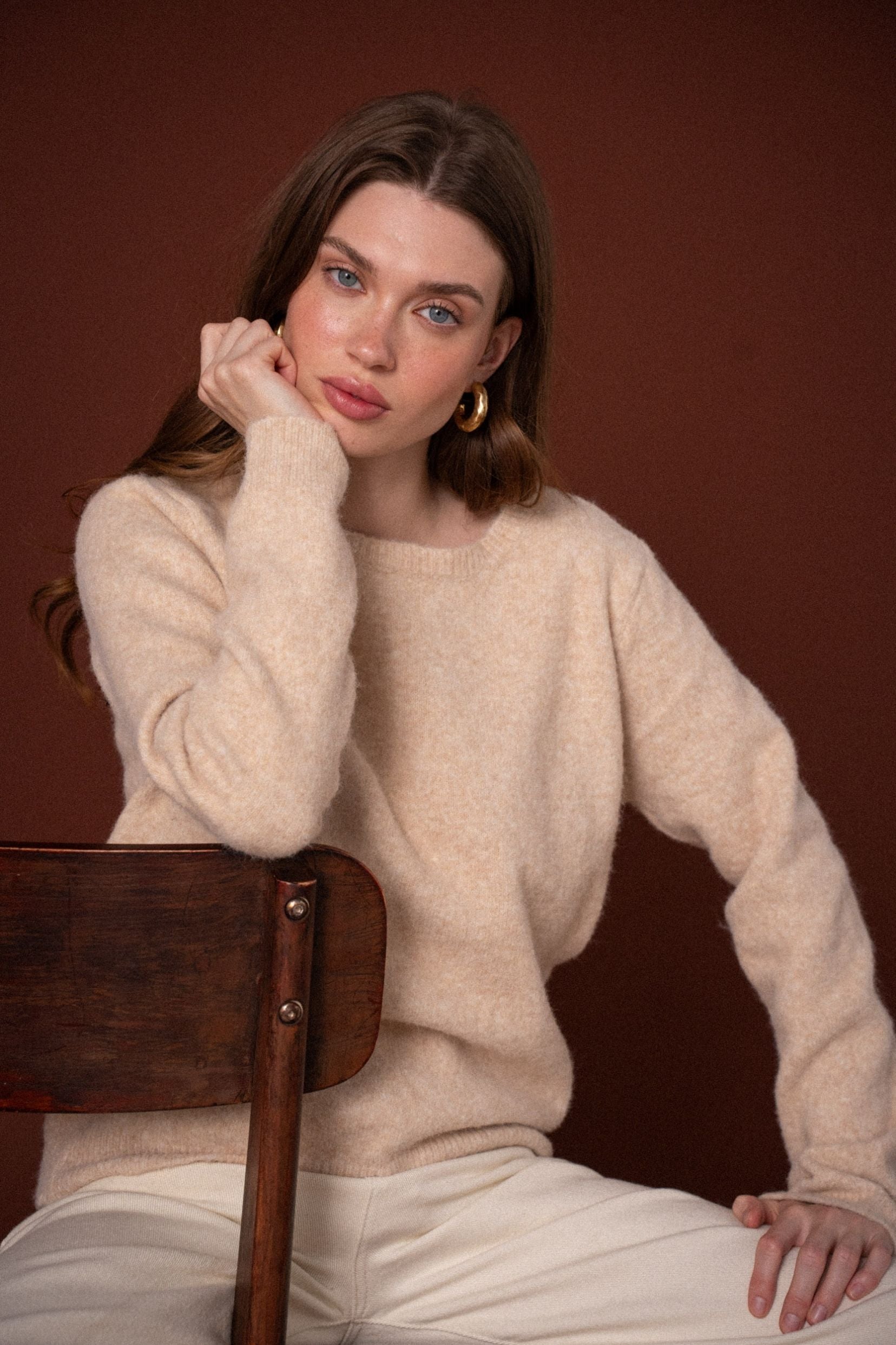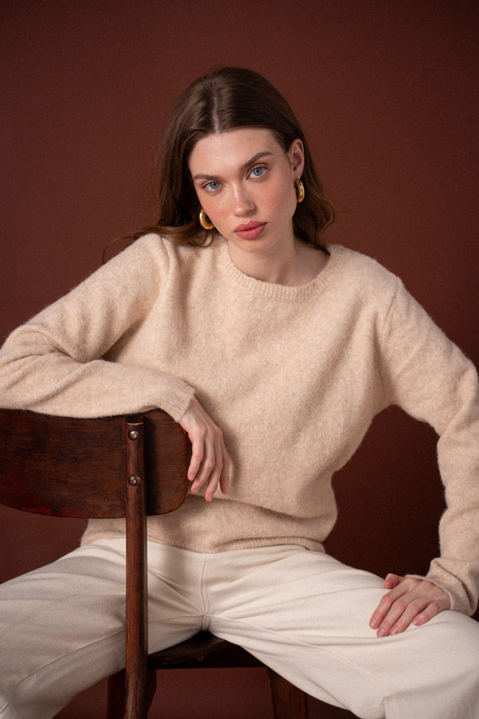 Le pull Margot séduit par son élégance discrète et son détail signature au dos.