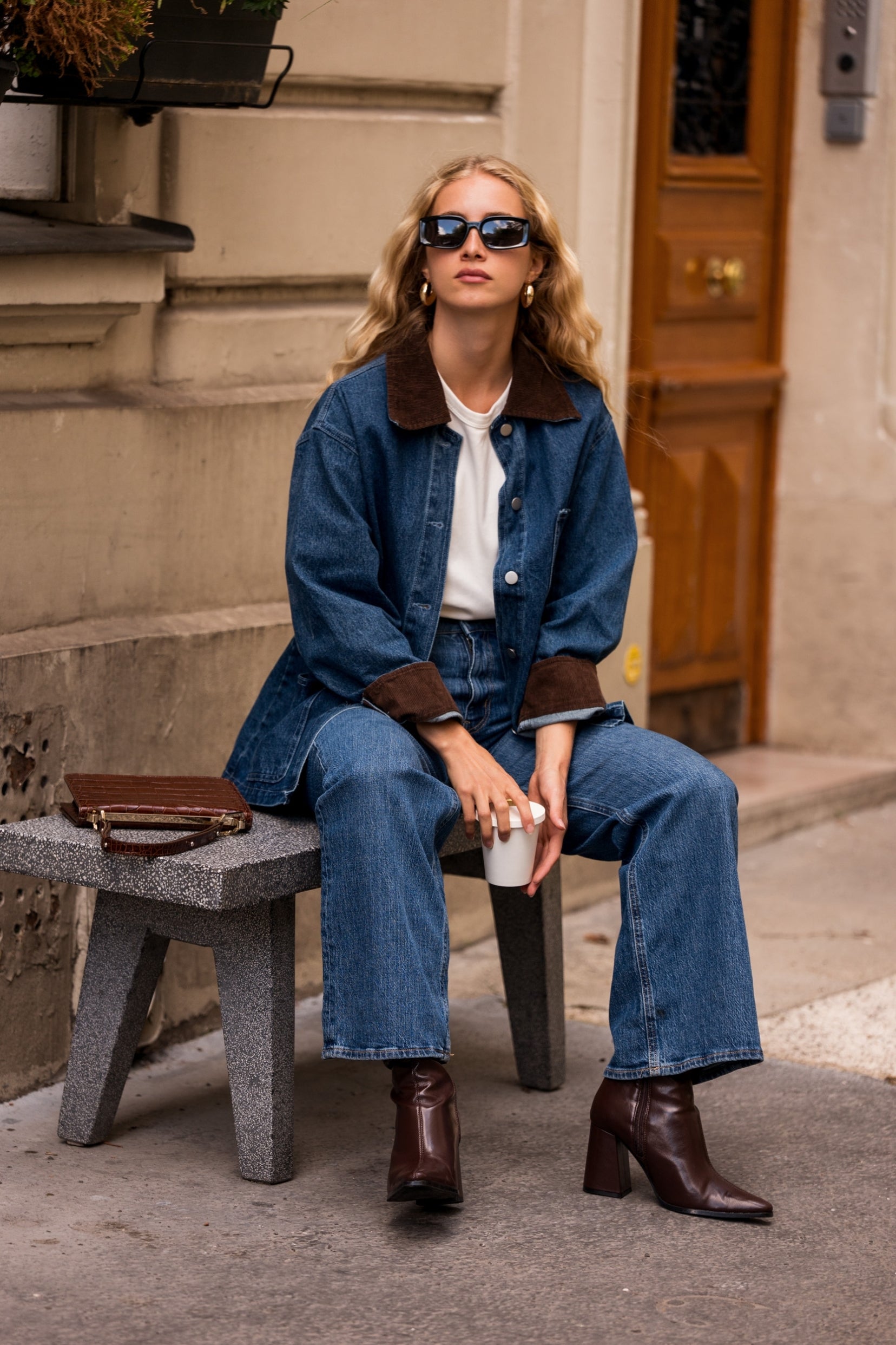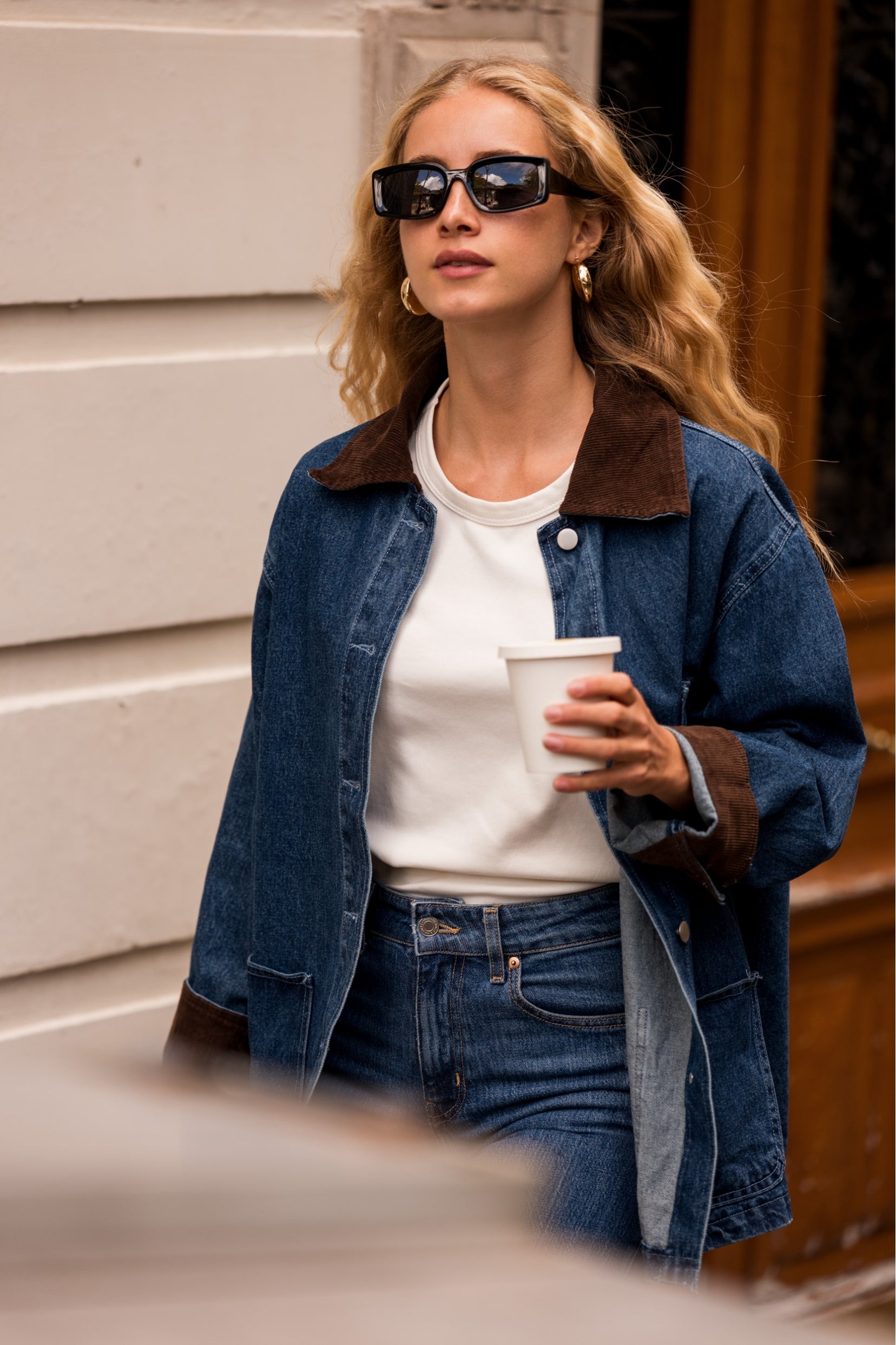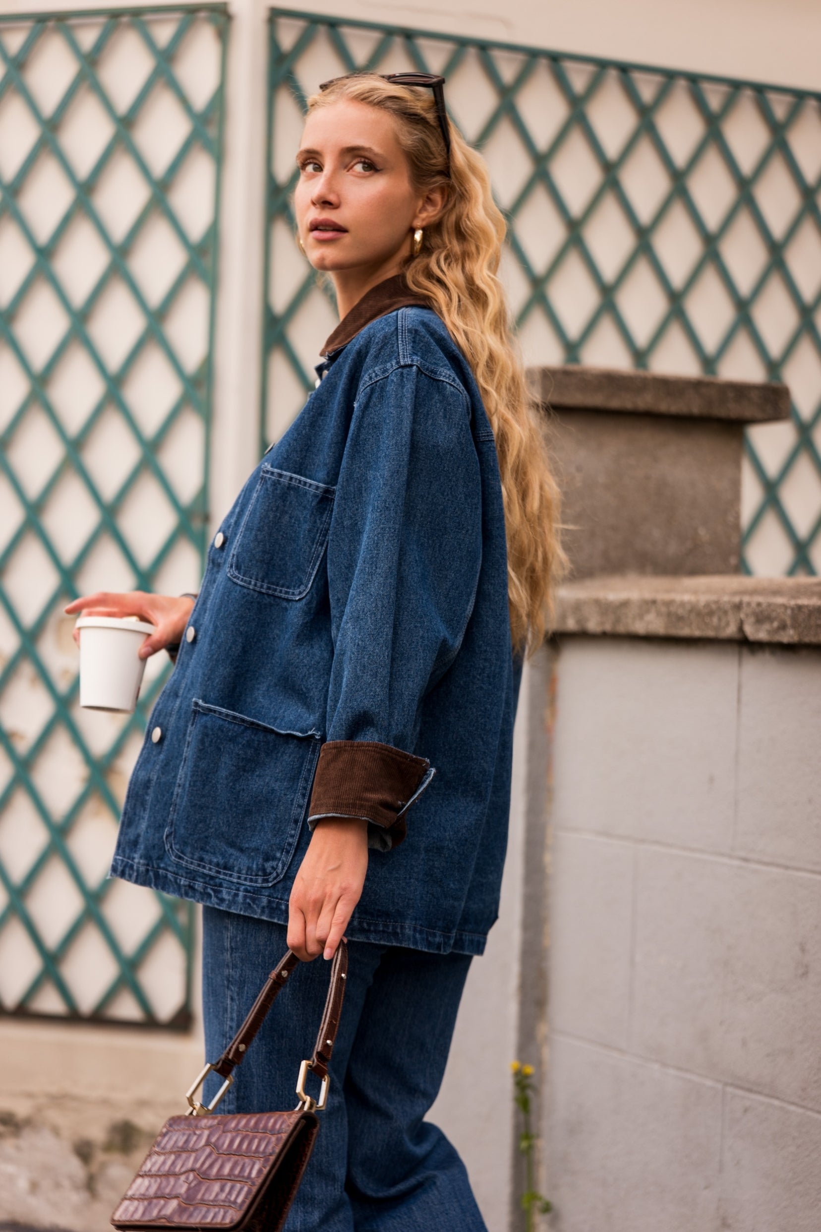 Avec sa coupe droite et ample, la veste Rosalie séduit par son col chemise classique et ses manches longues tombantes. Elle tombe sous les hanches et s’agrémente de finitions soignées : boutonnage sur le devant, poches plaquées et poignets contrastés. Une pièce qui allie décontraction et élégance.